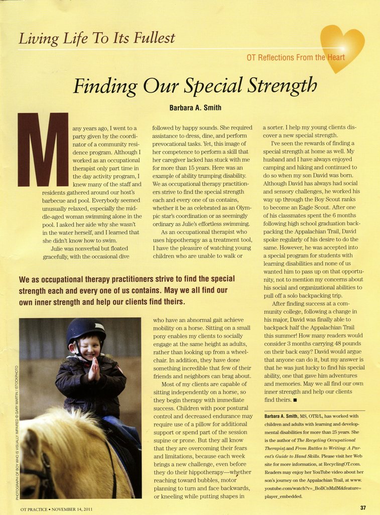 Advertisements The following article published in the American Journal of Occupational Therapy was written in 2011… I am now retired…